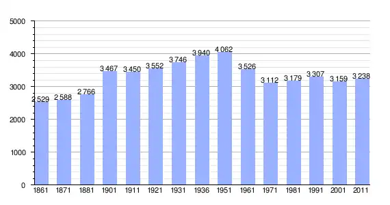 | Variação demográfica do município entre 1861 e 2011[3] |
