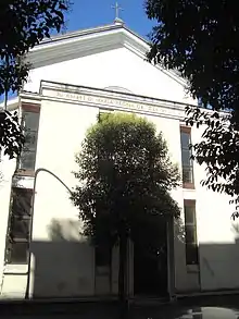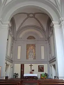 Como era uma capela conventual, uma parte integrante do convento para a qual ela foi construída, a moderna igreja não é facilmente identificável a partir do exterior. A nave sem corredores é quase quadrada e conta com um par de capelas externas anexas nos cantos perto da entrada. A partir destes, duas alas se projetam para a rua com fachadas curvas em formato de um quarto de círculo. criando pequenos pátios de cada lado da igreja. A fachada de fato da igreja é ocupada por um por um bloco anexo que aparentemente era para ser a residência de um capelão para as freiras.
