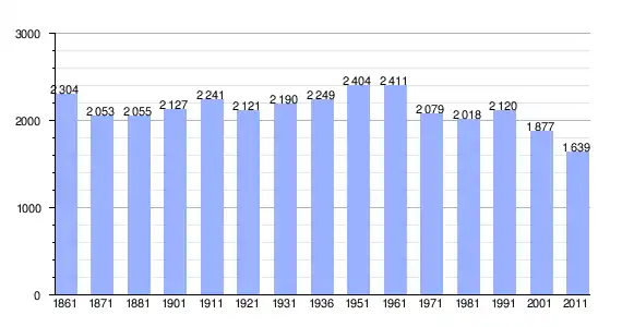 | Variação demográfica do município entre 1861 e 2011[3] |