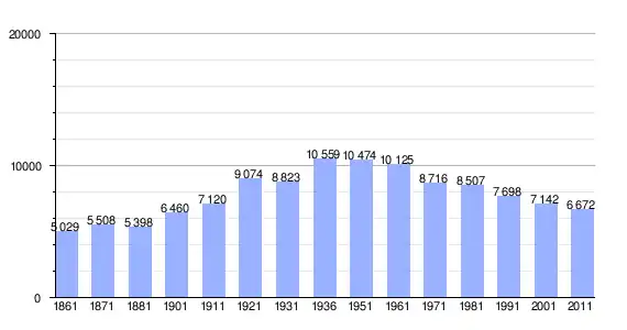 | Variação demográfica do município entre 1861 e 2011[3] |
