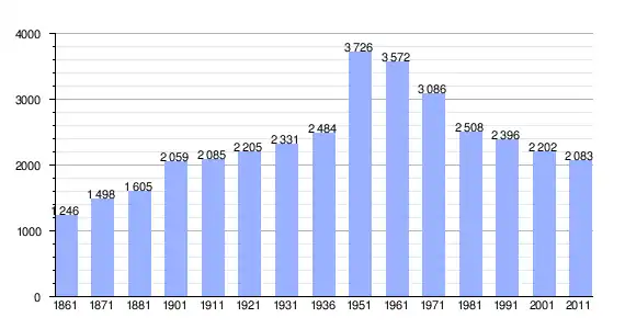 | Variação demográfica do município entre 1861 e 2011[3] |