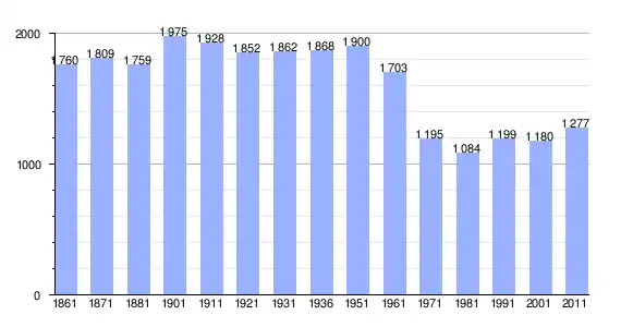 | Variação demográfica do município entre 1861 e 2011[3] |