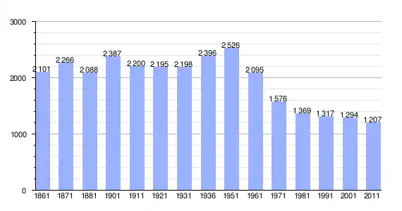 | Variação demográfica do município entre 1861 e 2011[3] |