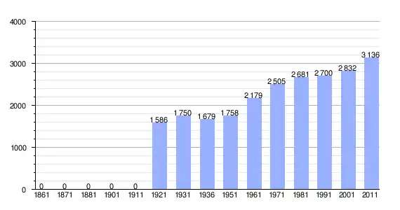 | Variação demográfica do município entre 1861 e 2011[3] |