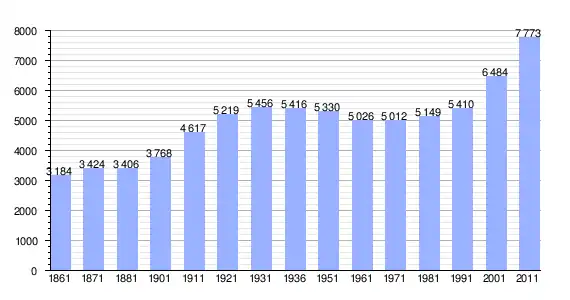 | Variação demográfica do município entre 1861 e 2011[3] |