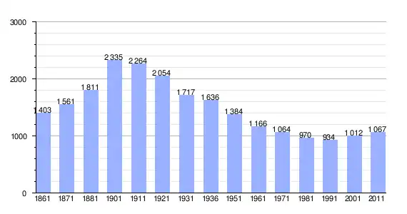 | Variação demográfica do município entre 1861 e 2011[3] |