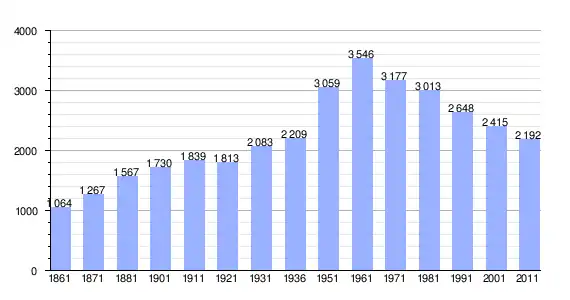 | Variação demográfica do município entre 1861 e 2011[3] |