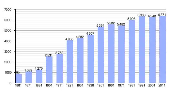 | Variação demográfica do município entre 1861 e 2011[3] |