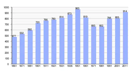 | Variação demográfica do município entre 1861 e 2011[3] |