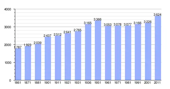 | Variação demográfica do município entre 1861 e 2011[3] |