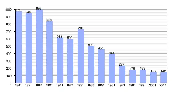 | Variação demográfica do município entre 1861 e 2011[3] |