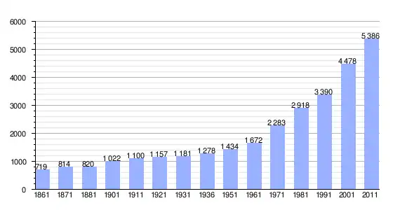 | Variação demográfica do município entre 1861 e 2011[3] |