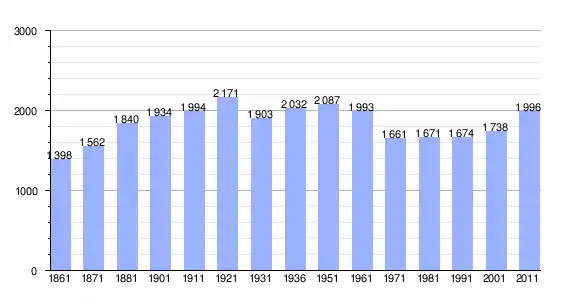 | Variação demográfica do município entre 1861 e 2011[3] |