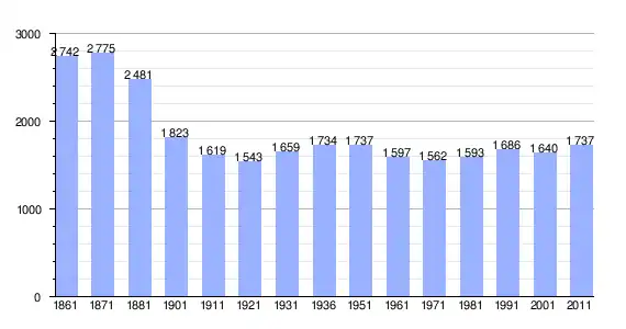 | Variação demográfica do município entre 1861 e 2011[3] |