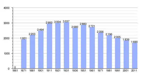 | Variação demográfica do município entre 1861 e 2011[3] |