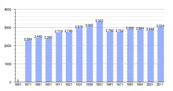 | Variação demográfica do município entre 1861 e 2011[3] |