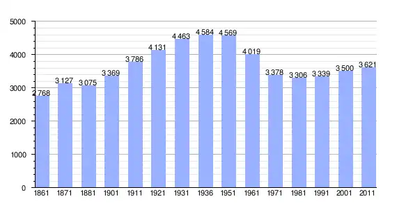 | Variação demográfica do município entre 1861 e 2011[3] |