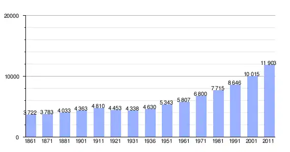 | Variação demográfica do município entre 1861 e 2011[3] |