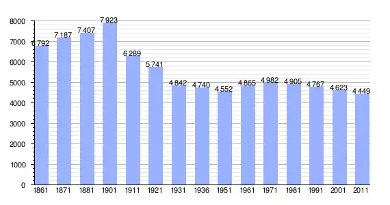 | Variação demográfica do município entre 1861 e 2011[3] |