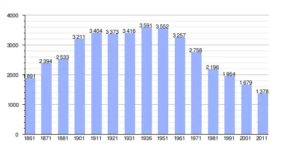| Variação demográfica do município entre 1861 e 2011[3] |