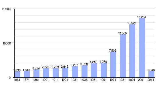 | Variação demográfica do município entre 1861 e 2011[3] |