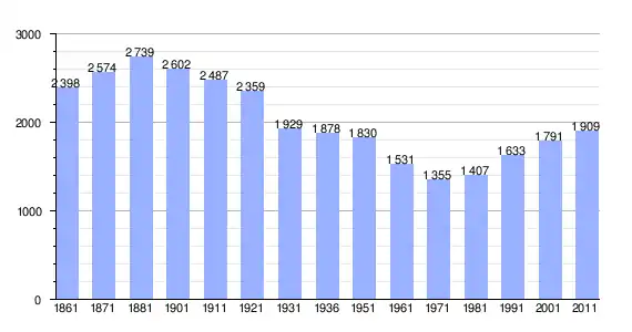 | Variação demográfica do município entre 1861 e 2011[3] |
