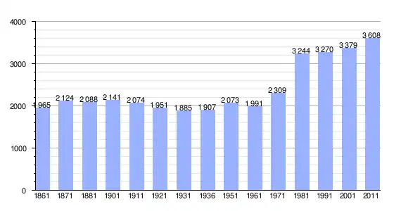 | Variação demográfica do município entre 1861 e 2011[3] |