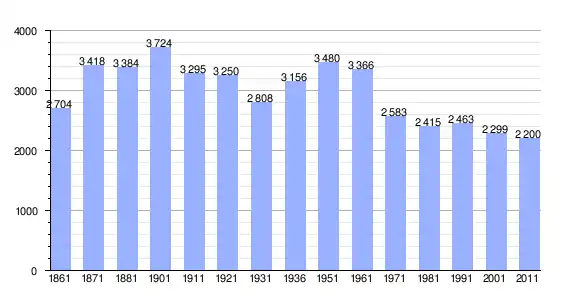 | Variação demográfica do município entre 1861 e 2011[3] |