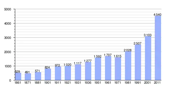 | Variação demográfica do município entre 1861 e 2011[3] |