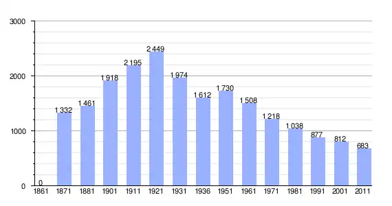 | Variação demográfica do município entre 1861 e 2011[3] |