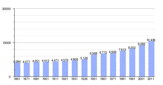 | Variação demográfica do município entre 1861 e 2011[3] |