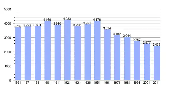 | Variação demográfica do município entre 1861 e 2011[3] |
