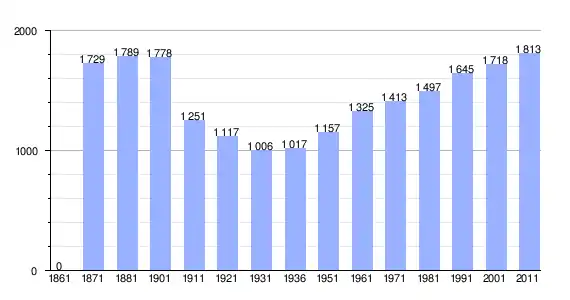 | Variação demográfica do município entre 1861 e 2011[3] |