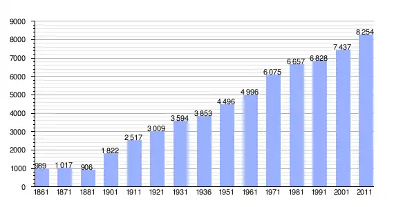 | Variação demográfica do município entre 1861 e 2011[3] |