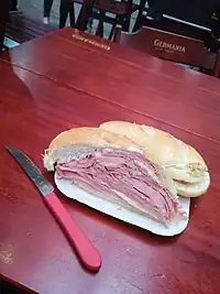 Seus ingredientes são pão (geralmente pão francês) e mortadela em fatias. Além disso, pode incluir outros ingredientes, como queijo (geralmente muçarela)[3] e vinagrete.[2]