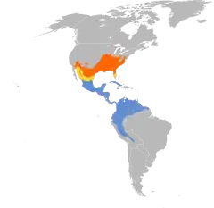 Seu habitat inclui áreas abertas arborizadas, sobretudo com carvalhos, bem como clareiras e bordas de matas secundárias. É encontrado do sul dos Estados Unidos ao norte da América do Sul, sendo um migrante extremamente raro no oeste da Europa. No Brasil, pode ser registrado na região do Alto Amazonas e do Rio Negro, no estado do Amazonas.