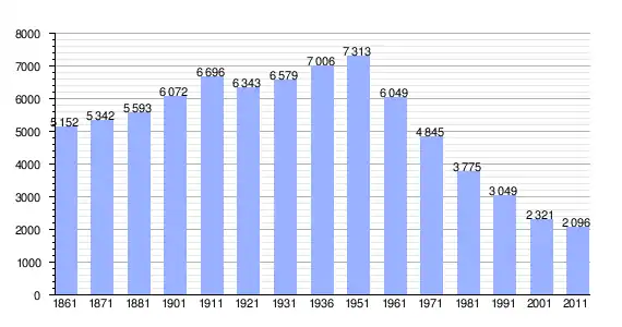| Variação demográfica do município entre 1861 e 2011[3] |