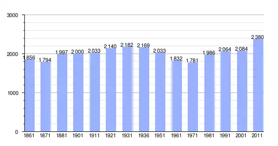 | Variação demográfica do município entre 1861 e 2011[3] |