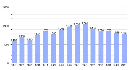| Variação demográfica do município entre 1861 e 2011[3] |