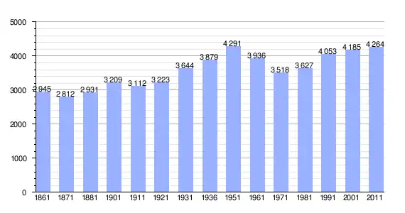 | Variação demográfica do município entre 1861 e 2011[3] |