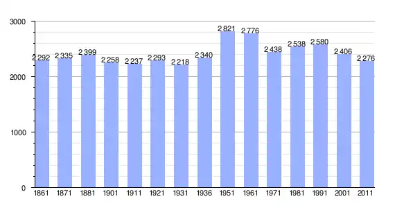 | Variação demográfica do município entre 1861 e 2011[3] |