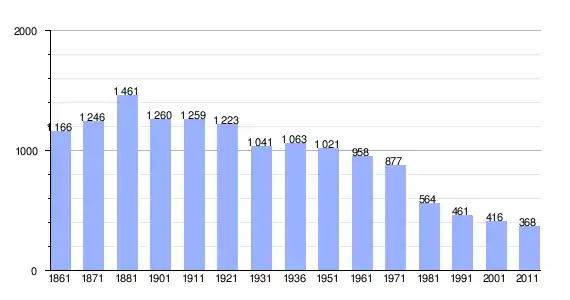 | Variação demográfica do município entre 1861 e 2011[3] |