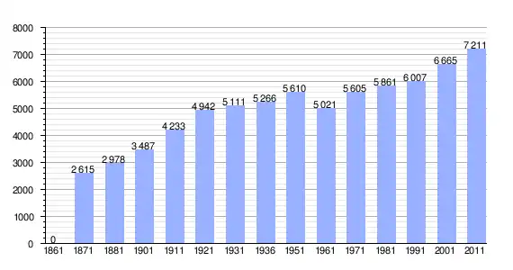 | Variação demográfica do município entre 1861 e 2011[3] |
