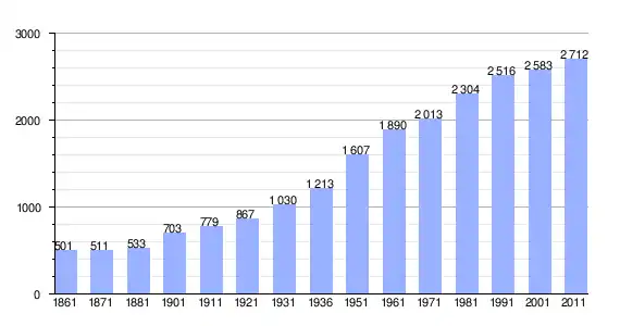 | Variação demográfica do município entre 1861 e 2011[3] |