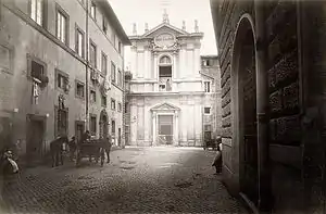 Esta igreja tem origem nos planos do papa Júlio II para sua nova via Giulia. Do lado oeste da via, ao norte da moderna via del Gonfalone, ele queria construir um enorme "Palazzo dei Tribunali" para reunir todas as cortes judiciárias de Roma, mas, infelizmente, quando ele morreu, seus sucessores não mantiveram o projeto e as obras incompletas de Bramante foram abandonadas.