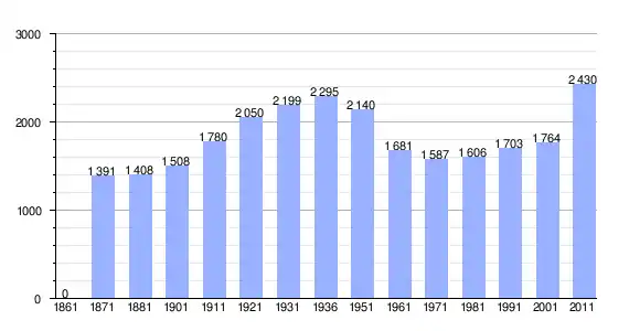 | Variação demográfica do município entre 1861 e 2011[3] |