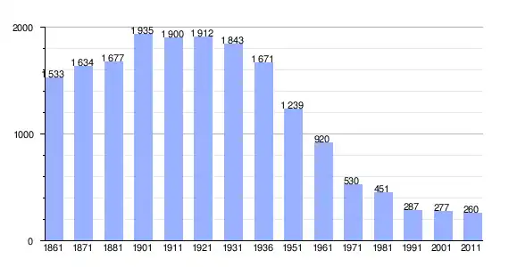 | Variação demográfica do município entre 1861 e 2011[3] |