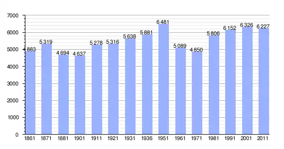| Variação demográfica do município entre 1861 e 2011[3] |