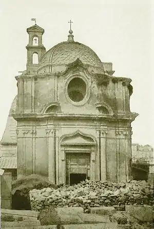 Diagrama da igreja e da praça (também perdida) por Rodolfo Lanciani.