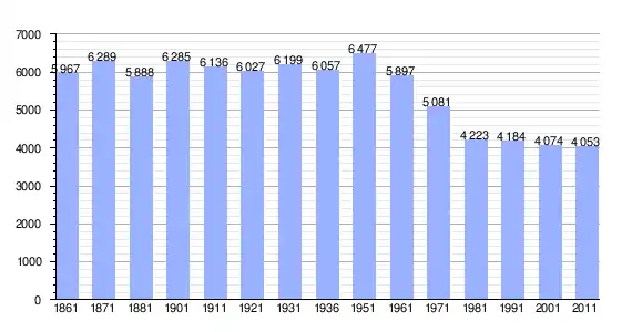 | Variação demográfica do município entre 1861 e 2011[3] |